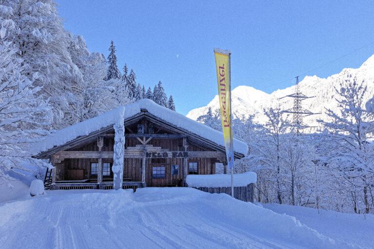 Die KELO BAR is direkt am Ende der Talabfahrt, neben der Talstation der Sonnenkopf-Bahn im Klostertal.
